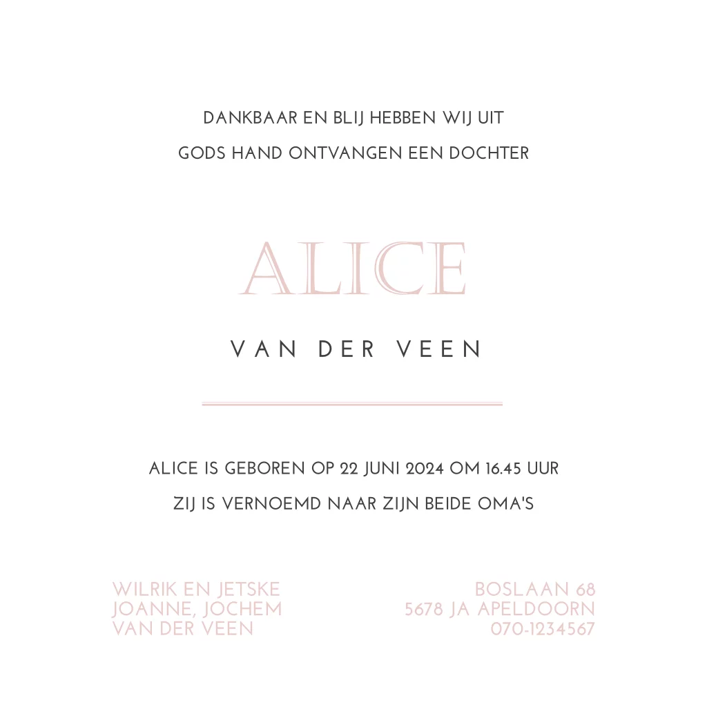 - Als het geboortekaartje naar wens is kun je enveloppen vooraf bestellen.