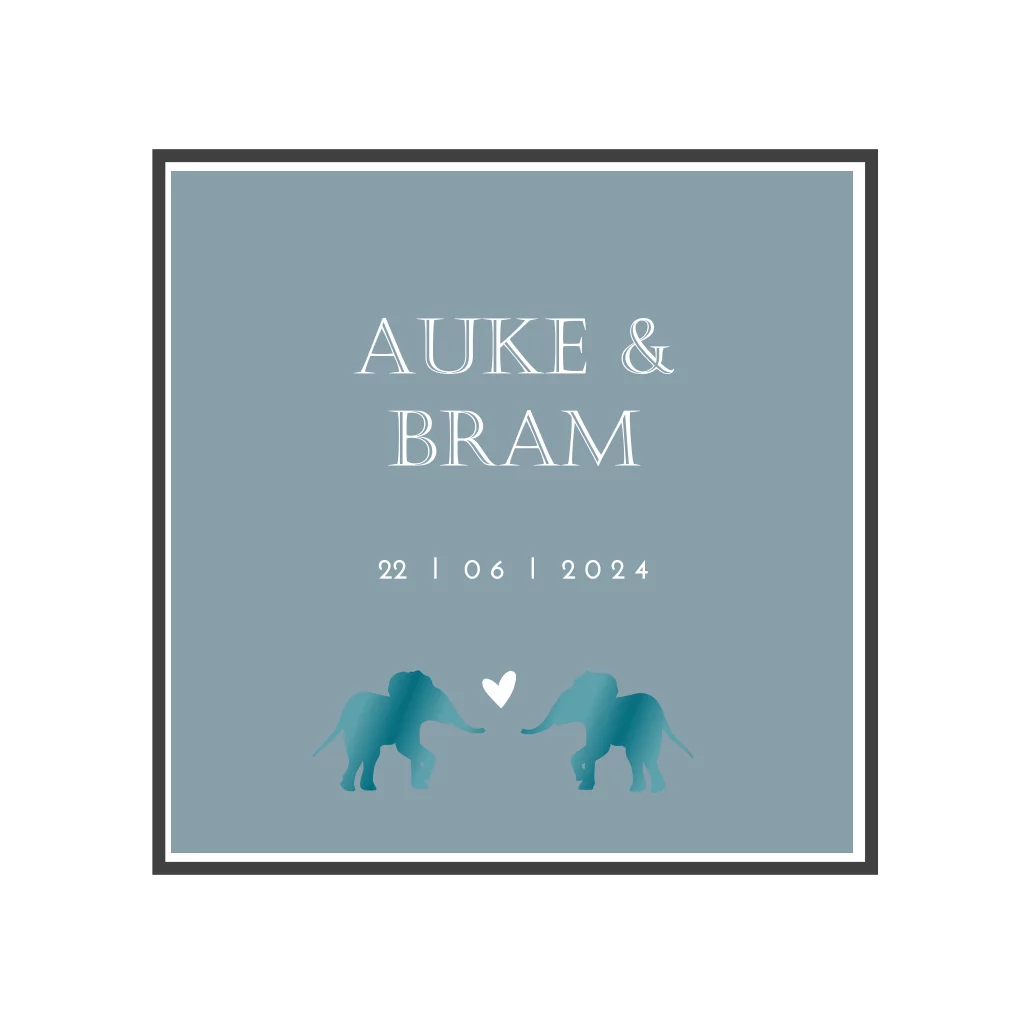 Klassiek geboortekaartje tweeling met olifantje en folie