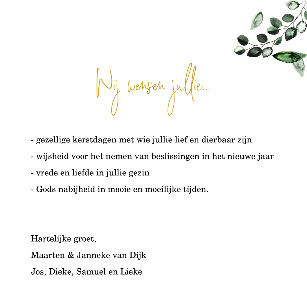 Op deze christelijke kerstkaart wordt in goudfolie gedrukt: Glory tot the king of kings. Op de binnenzijde kun je zelf thuis een tekst schrijven. Liever een voorgedrukte tekst? Voeg in de editor tekst toe.