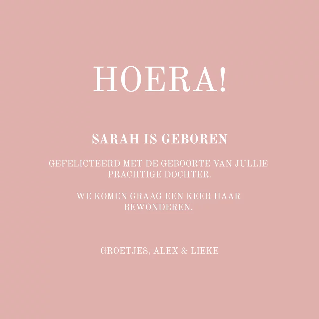 Een luxe felicitatiekaartje voor geboorte met roségoudfolie.