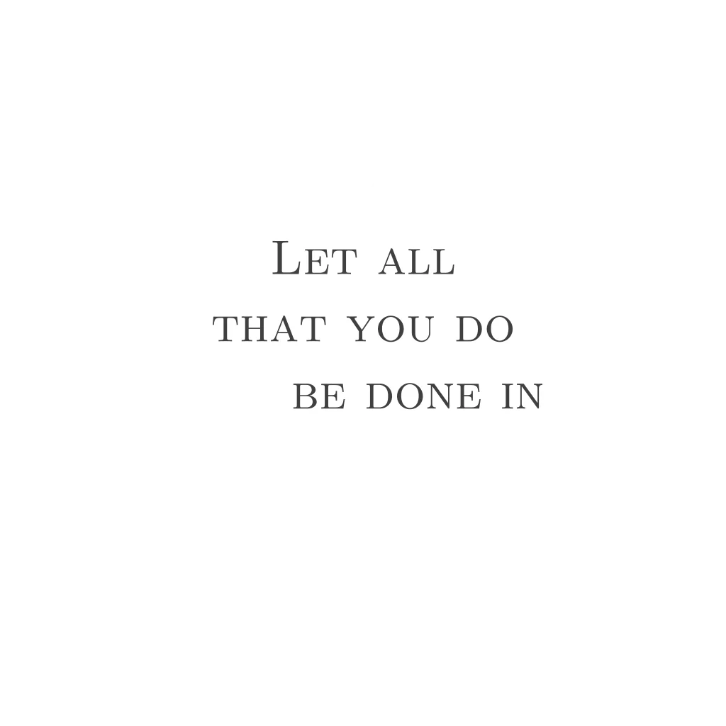 Een christelijke kaart met een mooie quote. Quote: Let all that you do be done in love. Deze kaart is leuk om aan mensen te geven op allerlei gebeurtenissen. De kleuren en de lettertypes van de teksten kunnen allemaal aangepast worden.