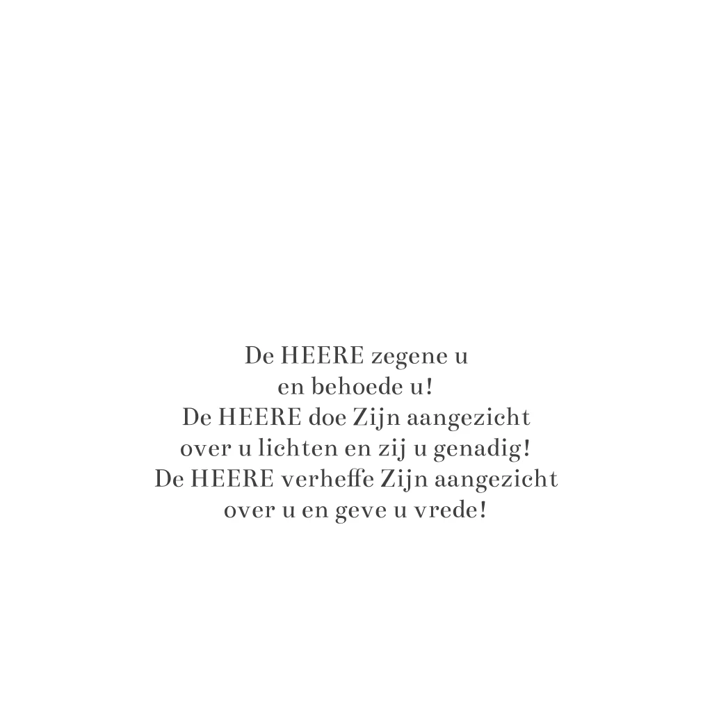 Een klassiek christelijke kaartje om te versturen met en zegenbede ui numeri 6: De HEERE zegene uen behoede u! De HEERE doe Zijn aangezicht over u lichten en zij u genadig! De HEERE verheffe Zijn aangezicht over u en geve u vrede!