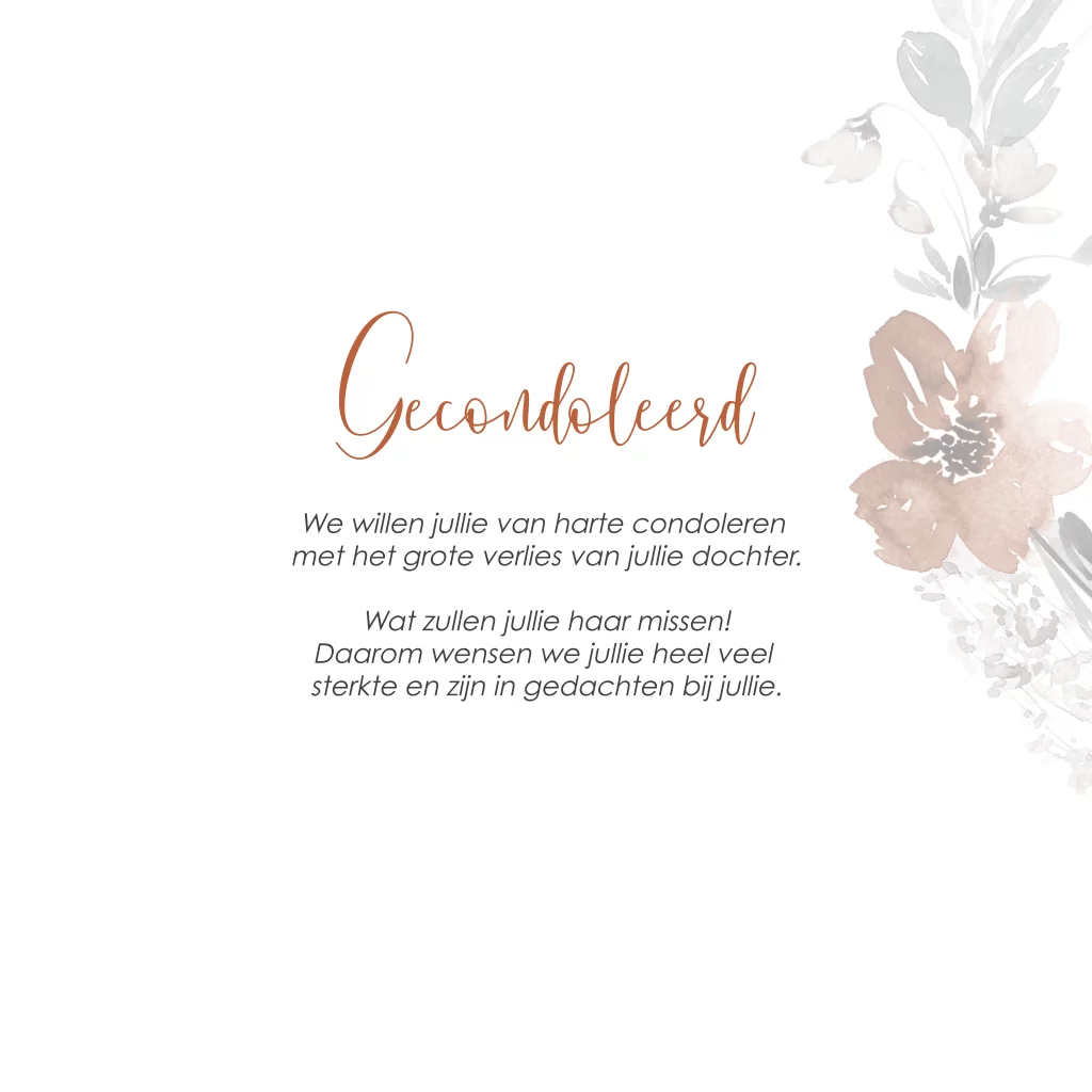 Een bloemen condoleance kaart om direct te versturen. Aan de binnenzijden kun je eigen tekst plaatsen.