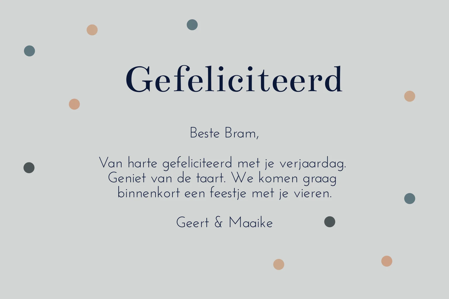 Stuur een man deze leuke verjaardagskaart met confetti stipjes. Je kunt aan de binnenzijde een leuke tekst plaatsen.