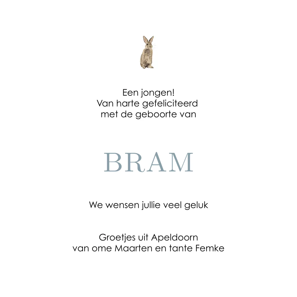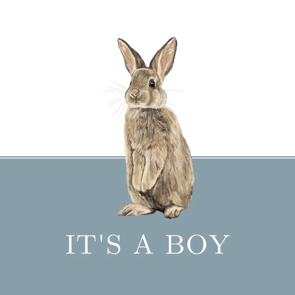 Een felicitatiekaartje voor de geboorte van een jongen met blauw en een diertje.