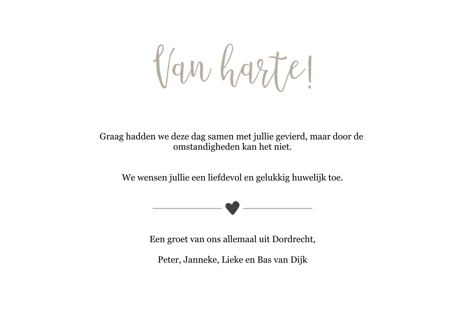 Stuur een felicitatiekaart voor een huwelijk direct met een liefdevolle tekst.