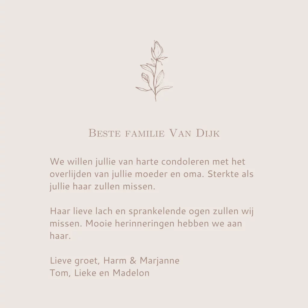 Stuur een condoleance kaart met dit takje naar iemand die je liefdevolle woorden wilt sturen na het verlies van een dierbare.