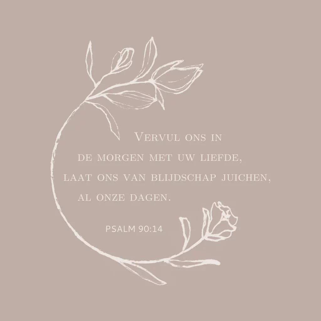 Stuur een christelijk kaartje met deze bijbeltekst uit Psalm 90 vers 14. Vervul ons in de morgen met uw liefde, laat ons van blijdschap juichen, al onze dagen.