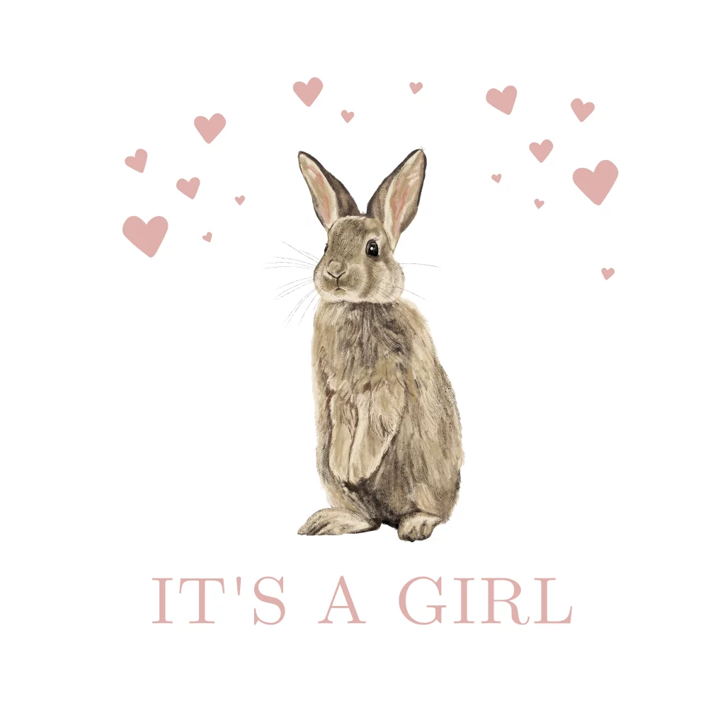 Kaartje sturen voor geboorte meisje met konijntje en hartjes