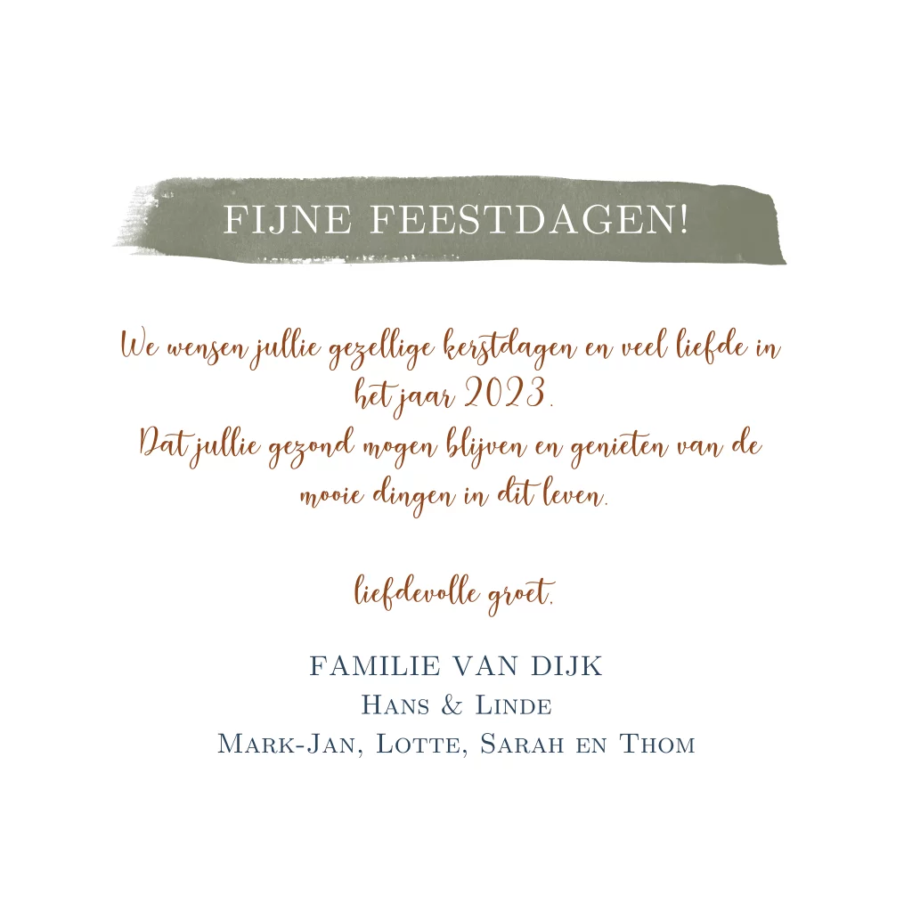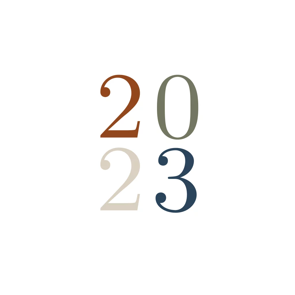 Stuur een kerstkaart met het jaartal 2023 in warme kleurtinten: stijlvol en uniek.