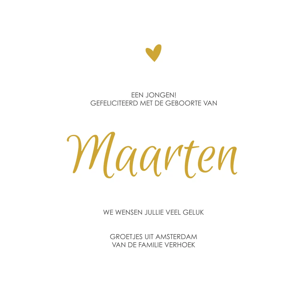 Luxe kaartje sturen geboorte jongen met goudfolie
