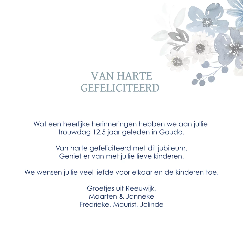 Stuur een kaartje voor een jubileum met een leuke foto van het stel. Eenvoudig te uploaden en bijsnijden. Het aantal jubileumjaren kun je natuurlijk aanpassen voor een ander jubileumjaar.