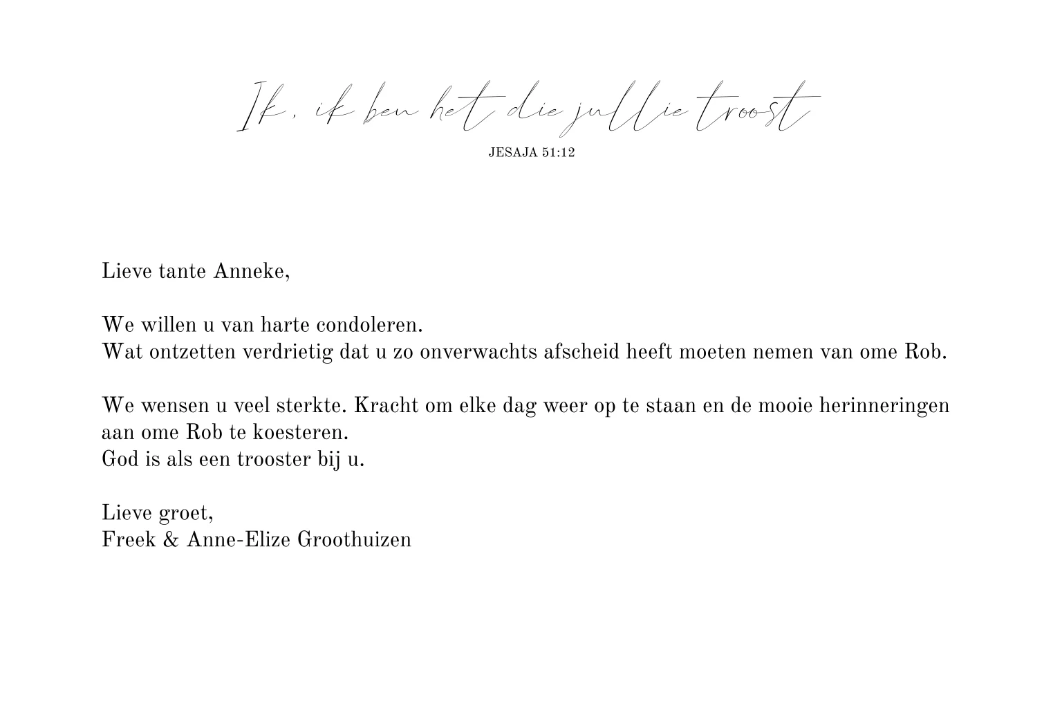 Een stijlvolle condoleance kaart in groen voor direct versturen.