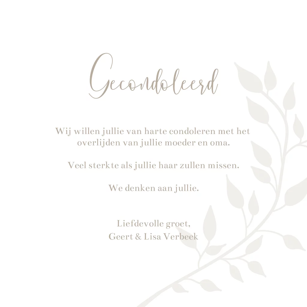 Stijlvolle condoleance kaart met takjes