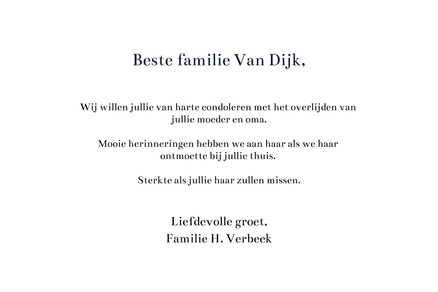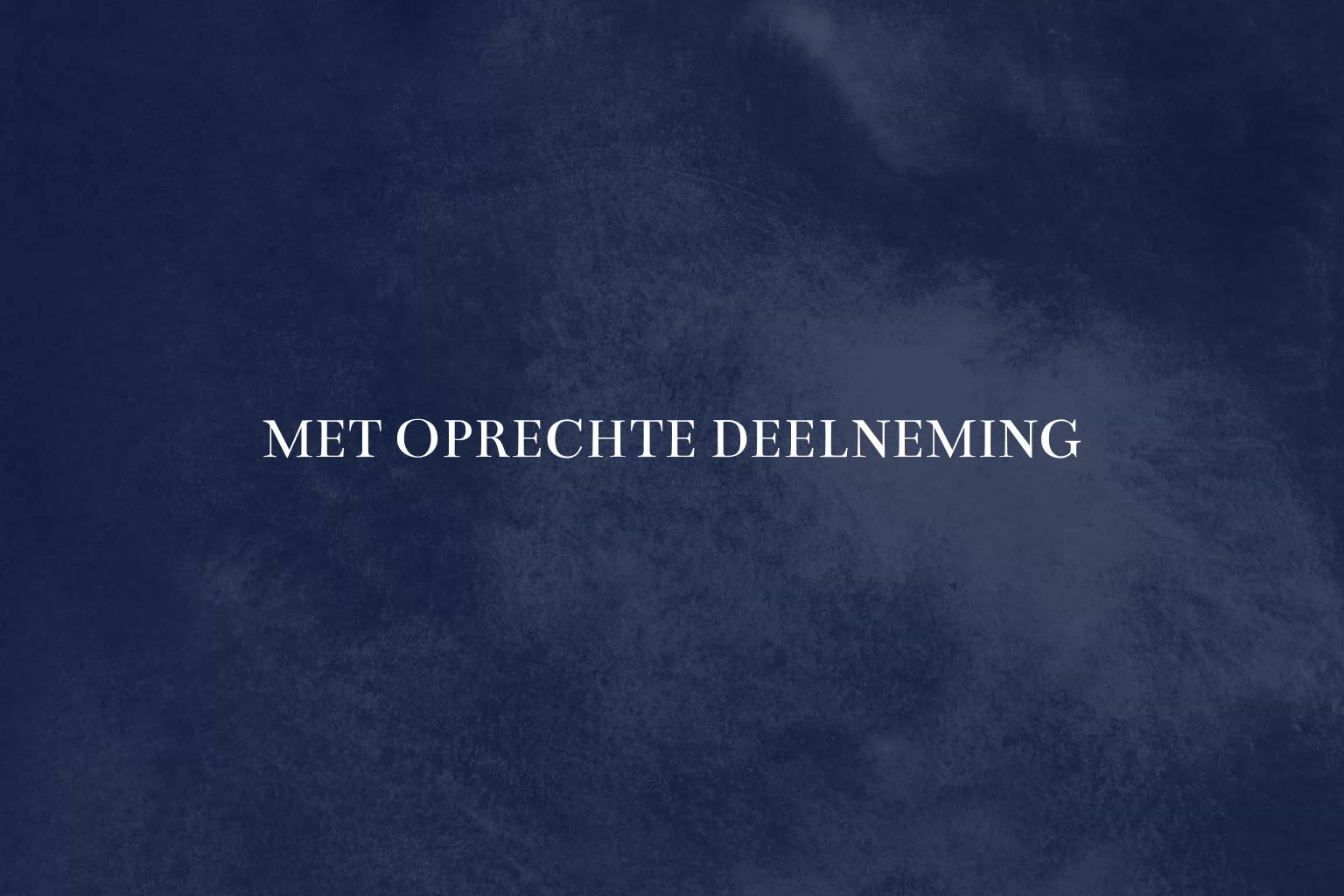 Een stijlvolle met oprechte deelneming kaart in donkerblauw om direct te versturen. Deze achtergrondkleur kun je in de editor aanpassen.