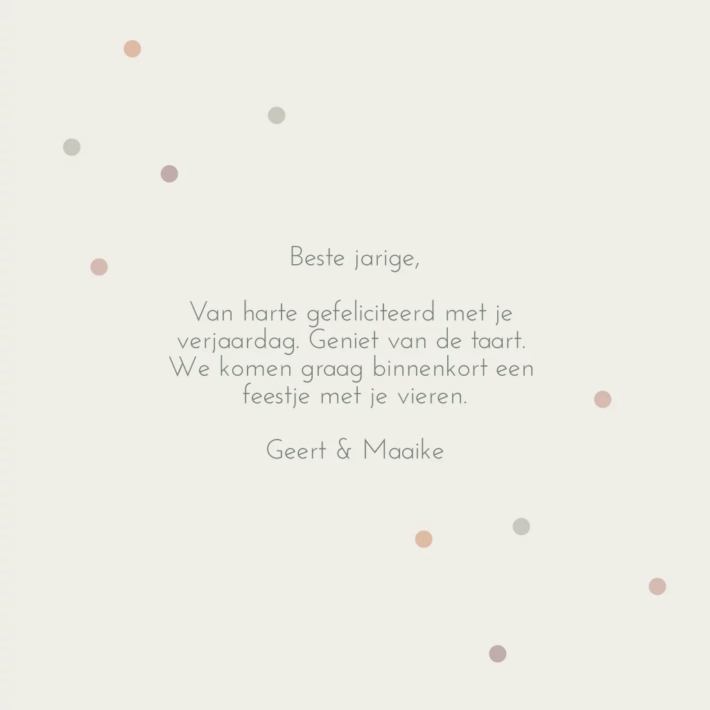 Stuur een stijlvolle verjaardagskaart met confetti in zachte kleurtinten.