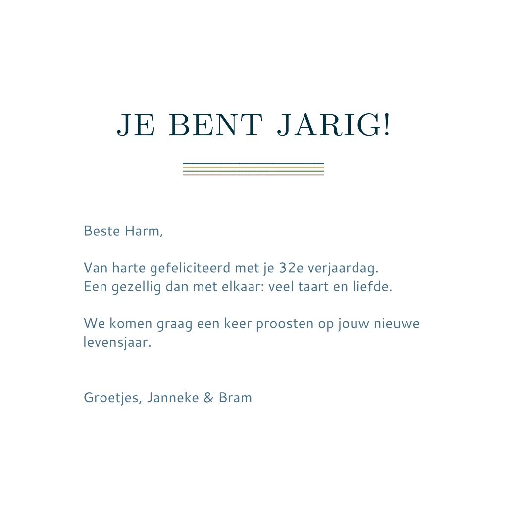 Stuur een verjaardagskaart naar een man met deze leuke tekst in kleurtjes.