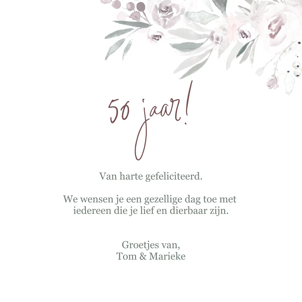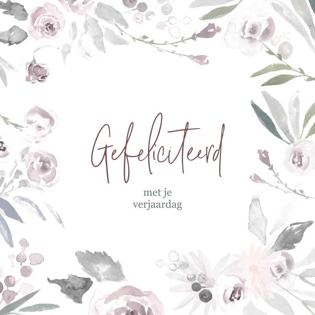 Stuur een jarige vrouw een verjaardagskaart met pastel kleurige bloemen. Je kunt aan de binnenzijde liefde woorden toevoegen.