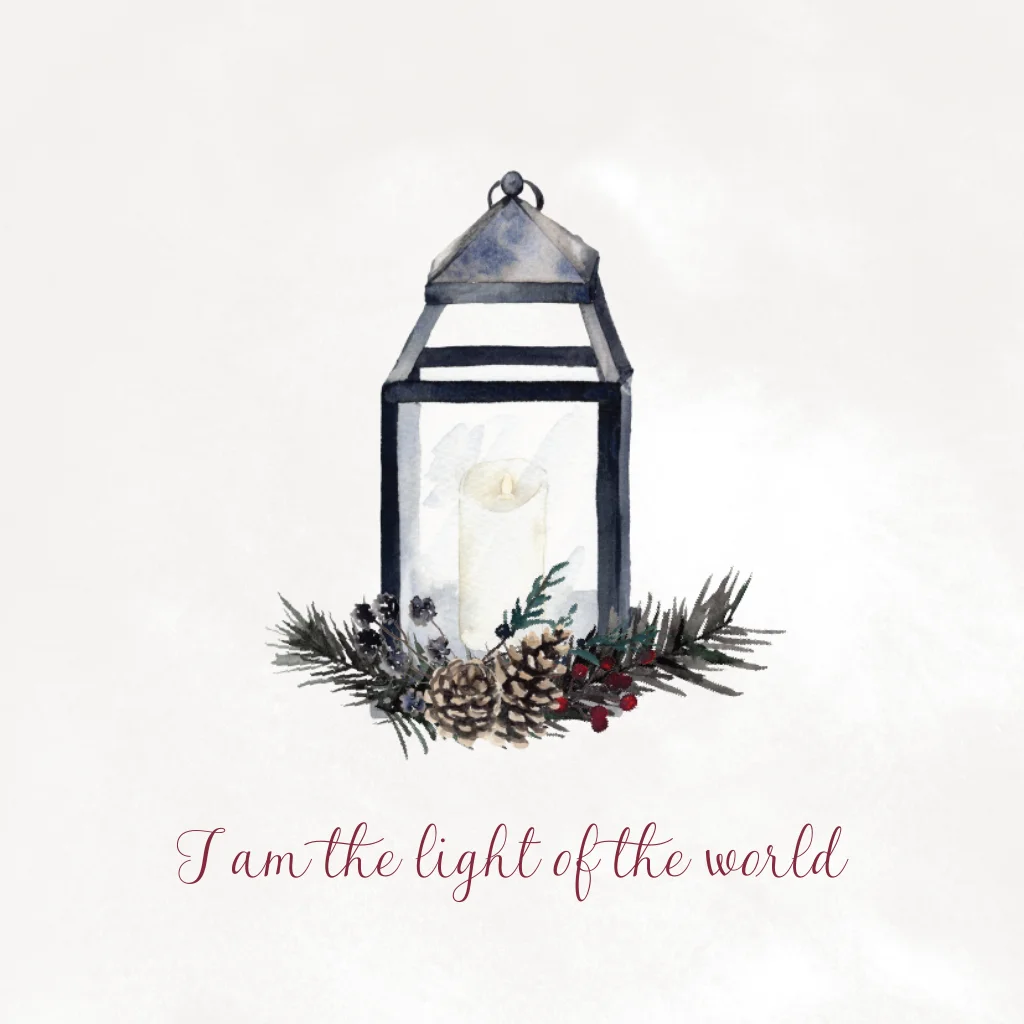 I am the light of the world! Met deze prachtige tekst maak je een christelijke kerstkaart. De teksten kunnen ook aangepast worden naar eigen wens.