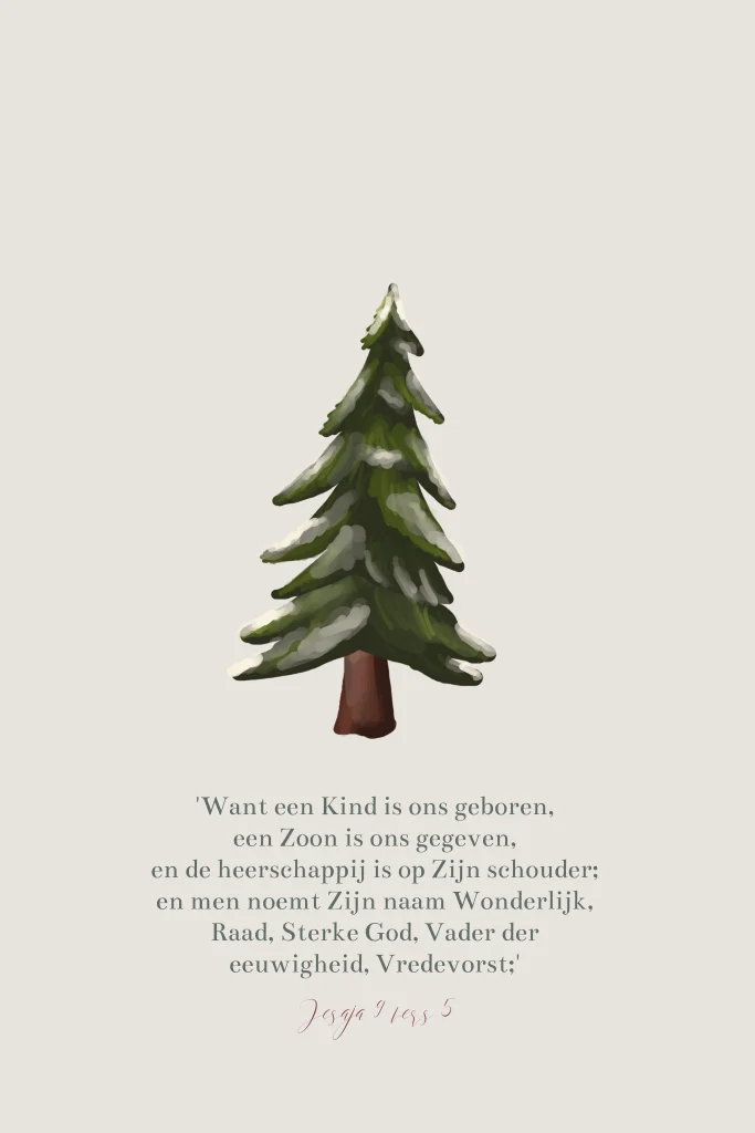 Deze kerstkaart met een sfeervolle kerstboom en een mooie bijbeltekst straalt rust en warmte uit. Een kaart die uitnodigt om even stil te staan bij de betekenis van kerst.