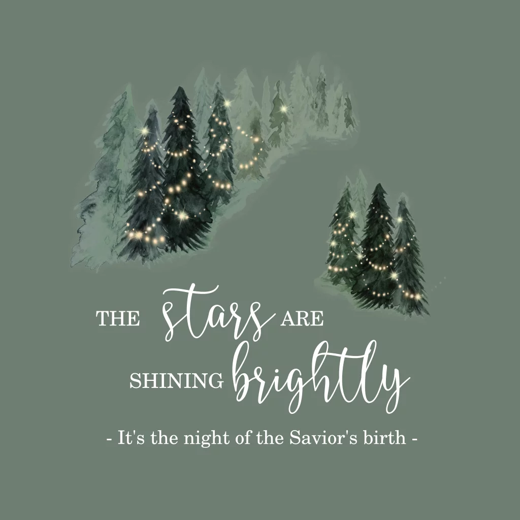 Een christelijke kerstkaart met sfeervolle boompjes.