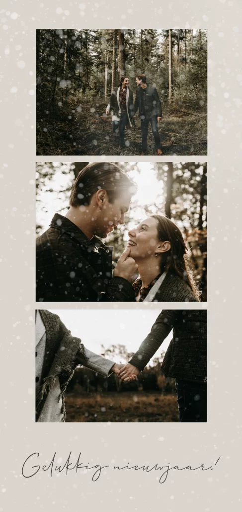 Upload eenvoudig jullie mooiste foto's op deze kaart. Je kunt eenvoudig de foto bijsnijden. TIP: verplaats eerst de afbeelding met sneeuwvlokjes die over de foto's ligt. Dit is even onhandig, maar de laag met sneeuwvlokjes geeft net dat leuke sfeervolle kerstgevoel.