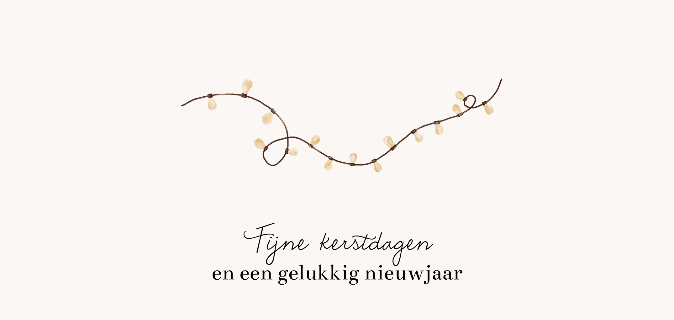 Deze kerstkaart met een gezellige lampjesslinger brengt meteen dat warme, knusse decembergevoel naar voren. Het zachte licht zorgt voor een vrolijke, feestelijke sfeer. Perfect om iemand een stralende kerstgroet te sturen.