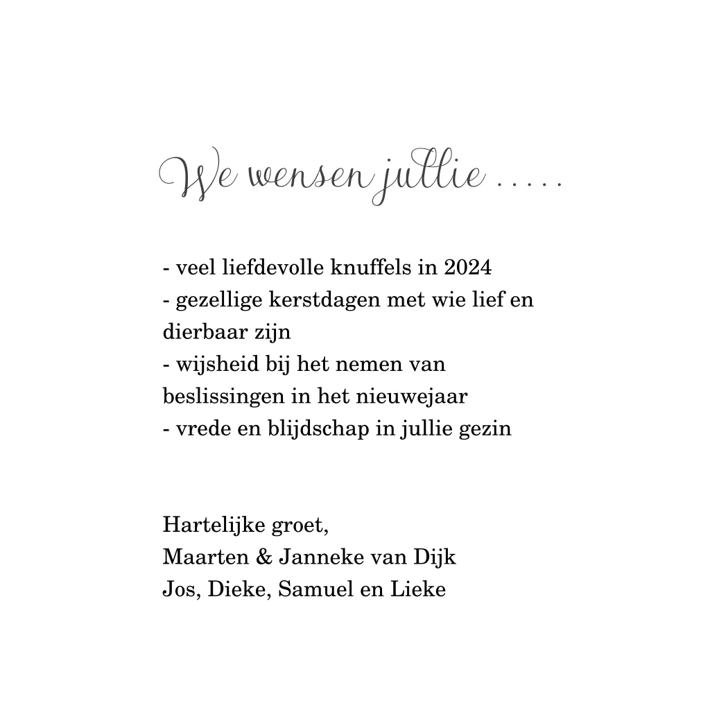 Maak een luxe kerstkaart met eigen foto in onze editor. Je kunt eenvoudig een foto uploaden. Op de voorkant en achterkant wordt folie gedrukt. Met deze kerstkaart heb je gegarandeerd een unieke en stijlvolle kerstkaart met liefdevolle woorden om te versturen. Je kunt een proefdruk bestellen en daarna een oplage van minimaal 10 kaarten thuis laten sturen of ons direct naar opgegeven adressen de kerstkaart laten sturen.