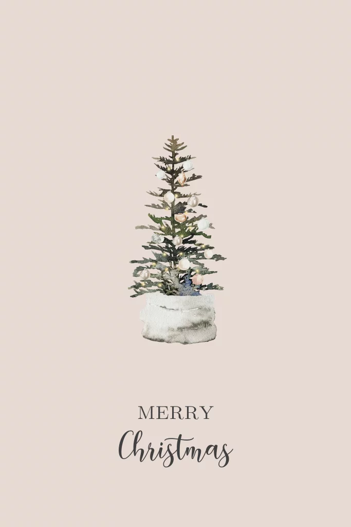 Stijlvolle kerstkaart met kerstboom in oudroze