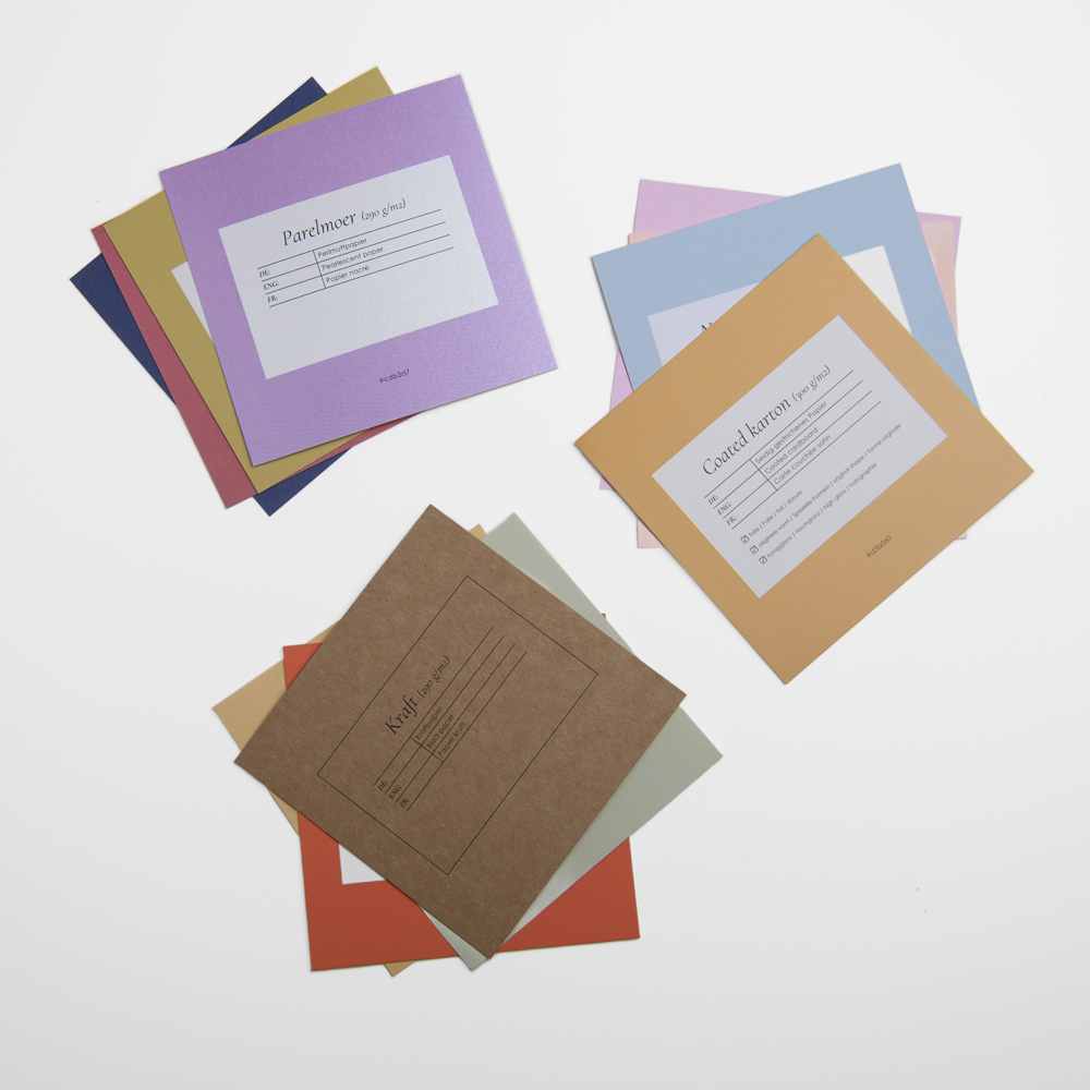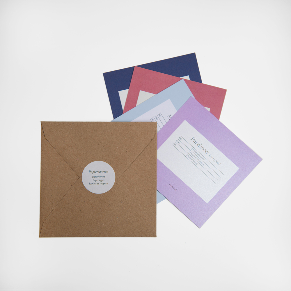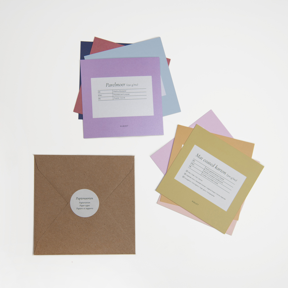 Ontdek de perfecte papiersoort voor jouw kaart! Deze stalenset bevat alle 14 papiersoorten. Voel en bekijk alle verschillende structuren, kleuren en diktes, zodat je de juiste keuze kunt maken voor jouw kaart.